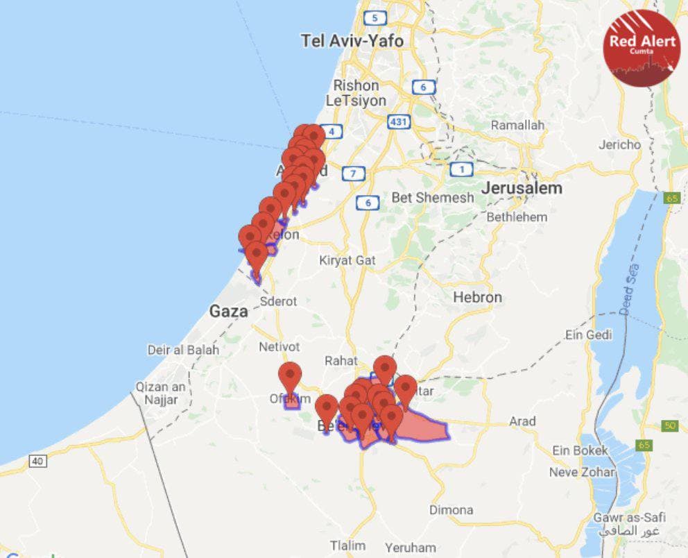 С первыми залпами сирена зазвучала в Натив а-Асара и Зиким. А уже более полномасштабная атака по приграничью началась в 12.37. В очередной раз боеголовки полетели в сторону южной промзоны Ашкелона, а к часу дня обстрелы дошли до Отеф Азы.
