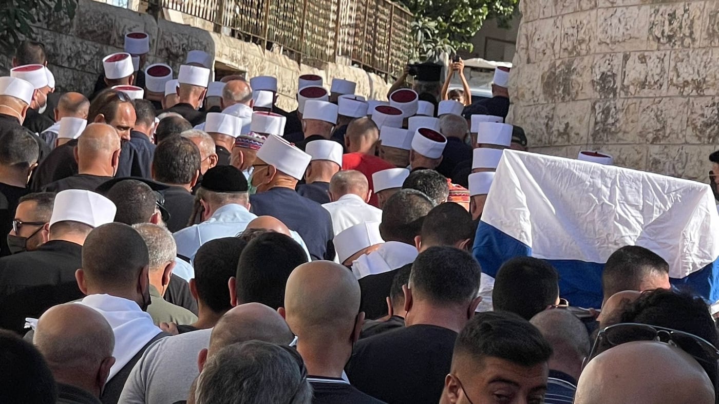 Сотни членов семьи и знакомых пришли на похороны Хусама Загаира – полицейского добровольца, сбитого вчера насмерть возле строительной площадки в Нагарии, где произошел конфликт между полицейскими и арабами рабочими. Участники траурной церемонии молча шли рядом с гробом по аллеям деревни.