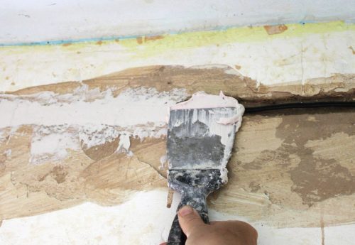 – Первый этап. Удаление плесени. Намочить поверхность, а затем соскоблить скребком или щеткой грибок по максимуму со стен, потолка и т.д.
