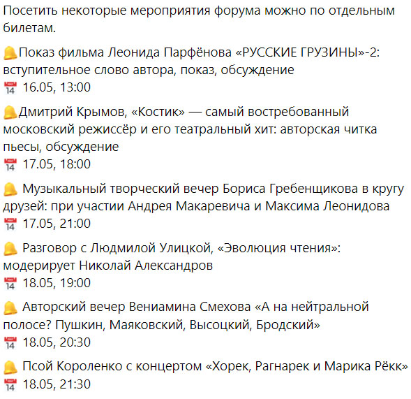 – В такой ситуации встречаться раз в год невозможно. Повестка меняется и надо обсуждать ситуацию. Мы думали: проводить выездной форум или нет, но потом полностью поменяли повестку. Откликнулось огромное количество людей. Впервые форум стал не только культурным. Будет презентация книги Михаила Фишмана о Борисе Немцове.