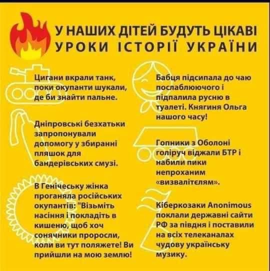 А вот подборка курьезов. Например, цыгане, которые украли у русских танк или днепровские бомжи, объединившиеся в сборе бутылок для коктейлей «Молотова». И это не шутки.