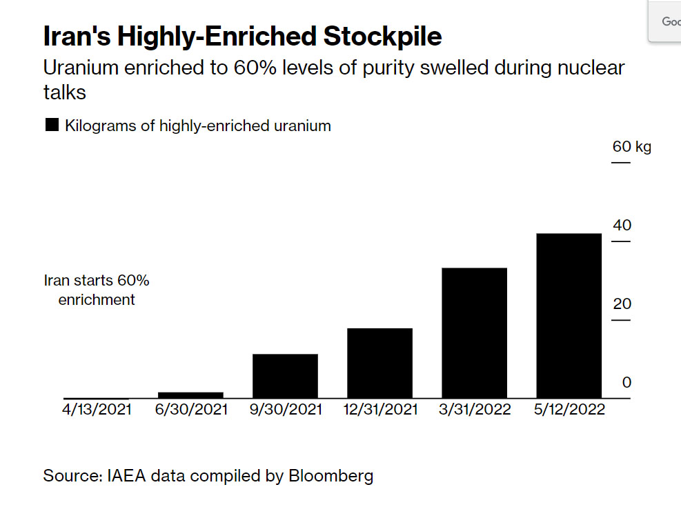 При отсутствии ограничений Тегеран произвел 43 килограмма обогащенного урана до 60%, что на 30% выше, чем за 3 недавних месяца, сообщило МАГАТЭ вчера в 16-страничном ограниченном документе.